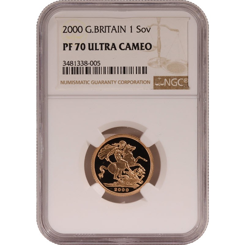 2000 год – Великобритания 1соверен. Пруф. Тираж: 16000 штук.