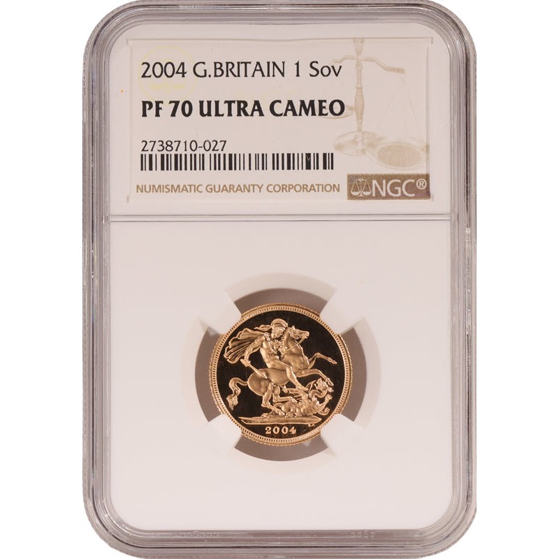 2004 год – Великобритания 1соверен. Пруф. Тираж: 12685 штук.