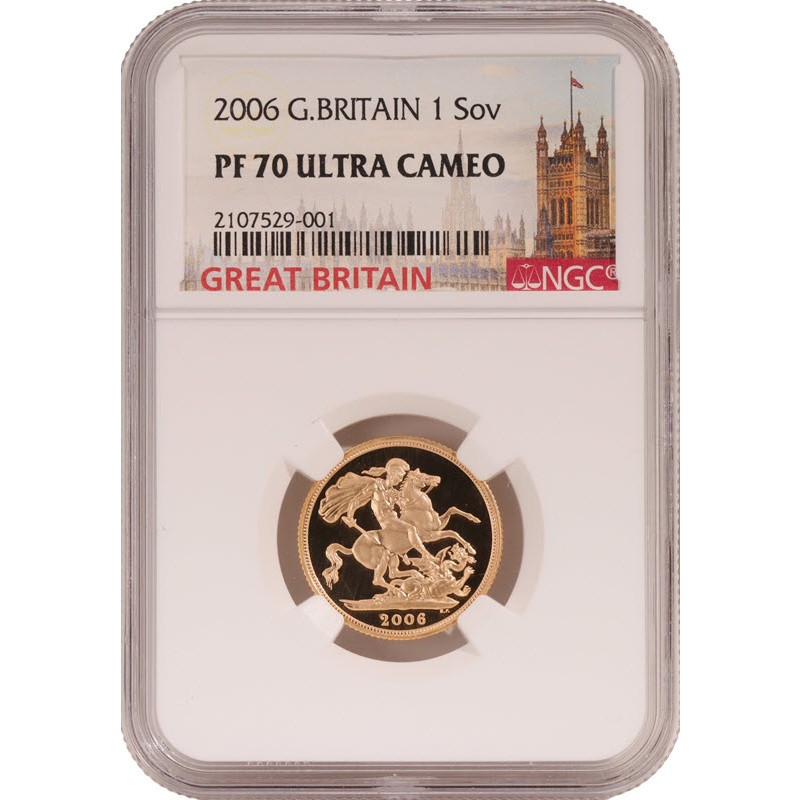 2006 год – Великобритания 1соверен. Пруф. Тираж: 11485 штук.