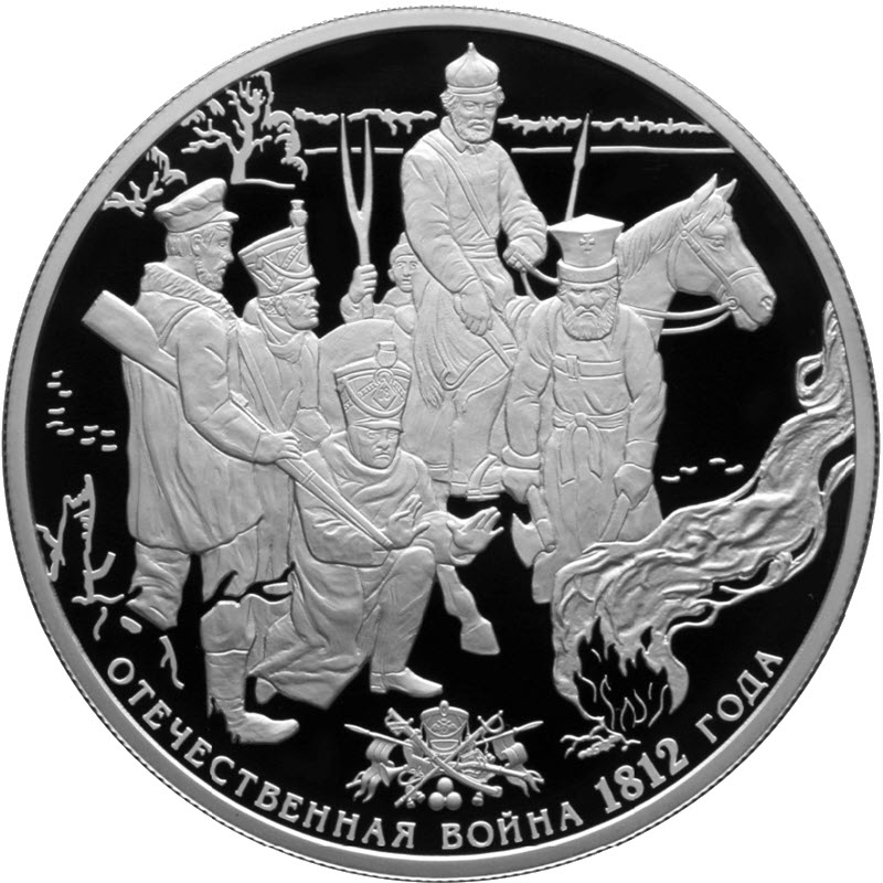 Серебряная монета России "200-летие победы в Отечественной войне 1812 года. Партизаны" 2012 г.в., 155.5 г чистого серебра (Проба 925)