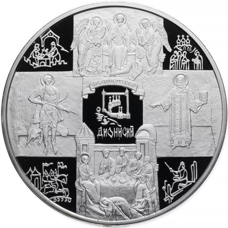 На реверсе изображена гравюра Ферапонтова монастыря (XIV век), расположенного на берегу озера. Над гравюрой надпись: ФЕРАПОНТОВО, под ней: ДИОНИСИЙ. На фоне стилизованного креста - фрески Дионисия из церкви Рождества Богородицы Ферапонтова монастыря: слева - "Святой Георгий", справа - "Святой митрополит Петр", вверху - «Богоматерь с двумя ангелами», внизу - «Христос в доме Симона и грешника». По краям миниатюры XVI века из "Личного летописного свода": вверху - "Строительство" и "Посещение монастыря", внизу - "Военный поход" и «Иконописцы».