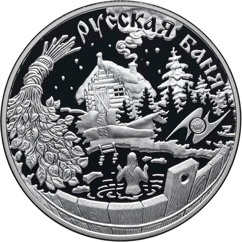 Серебряная 1 унцовая монета Банка России из серии «Национальные обычаи и обряды стран-членов ЕврАзЭС» посвящена теме «Русская баня».