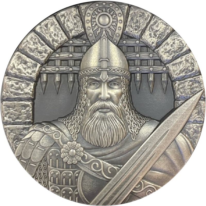 Серебряный жетон, весом 2 тройские унции (62.2 грамм), выпущенный к 200-летию выхода поэмы А.С. Пушкина «Песнь о Вещем Олеге». Идею написания поэмы Александр Сергеевич заимствовал из летописи «Повесть временных лет».