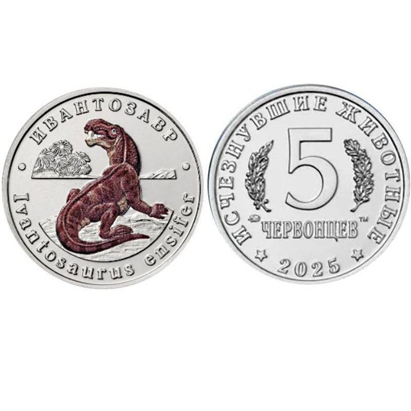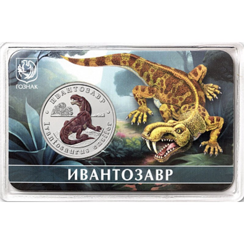 Российский медно-никелевый жетон 2025 года от ММД Гознак посвящен ивантозавру. У него качество анциркулейтед и селективная окраска. Поставляется в блистере размером 85 х 55 мм. Тираж: 2500 штук.