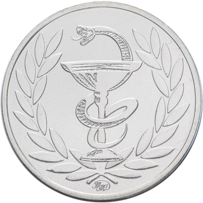 На аверсе изображена Чаша Гигеи.