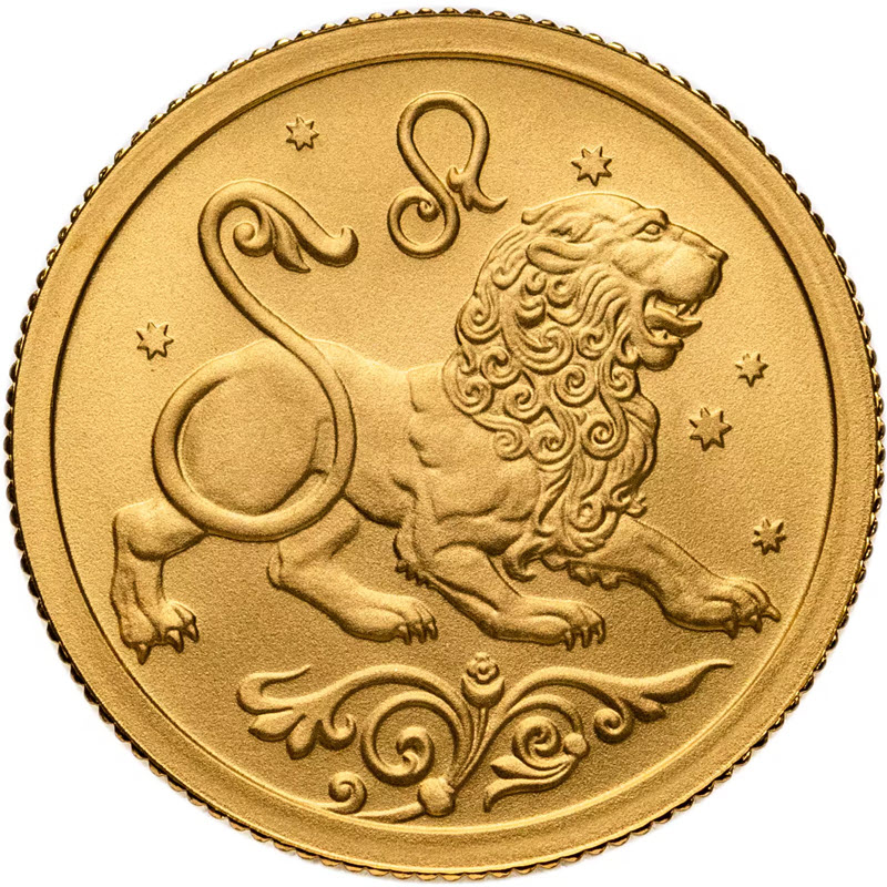 на матированной поверхности – блестящие изображения льва, звезд, стилизованных ветвей растений и знака зодиакального созвездия Льва.