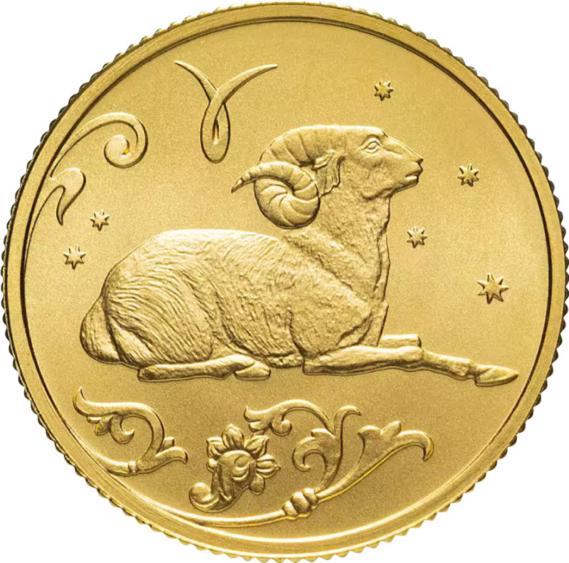 Золотая монета России «Знаки Зодиака - Скорпион» 2005 года выпуска. Созвездие Овна содержит 82 звезды, видимые невооруженным глазом. Находится в Северном полуша-рии.