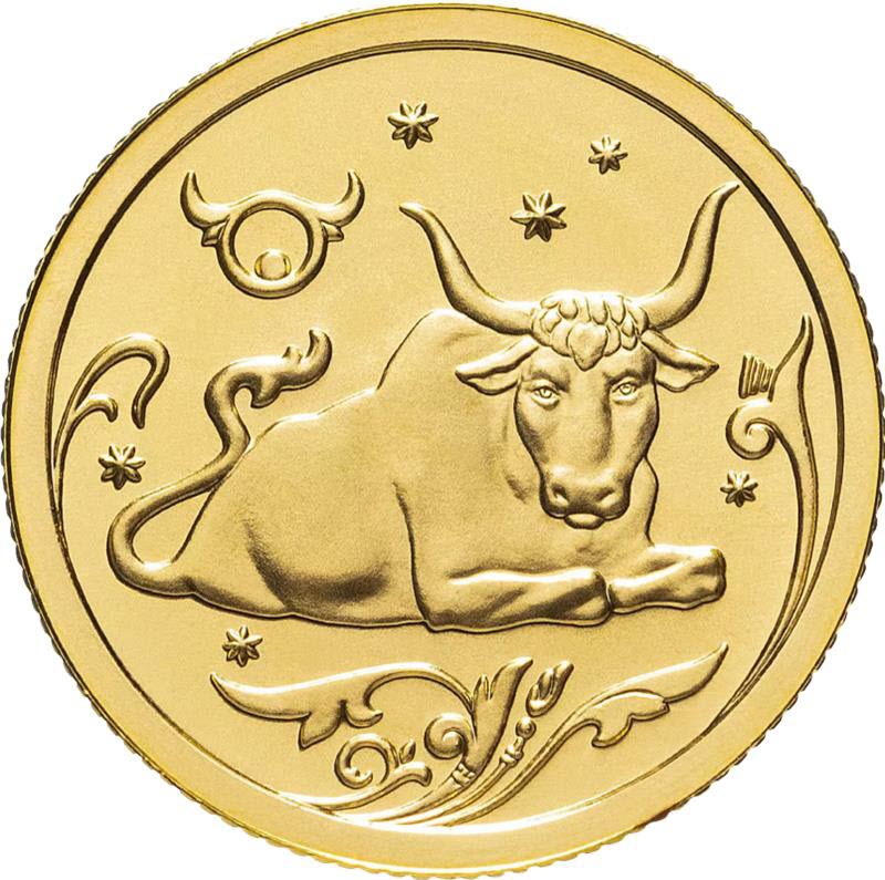 Золотая монета России «Знаки Зодиака - Телец» 2005 года выпуска.