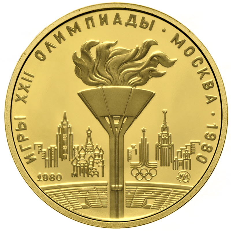 Золотая монета 100 рублей с изображением олимпийского факела, получившая название «Олимпиада-80. Факел», входит в состав серии из шести золотых монет «Игры XXII Олимпиады», выпуск которых был приурочен к проведению Олимпийских игр в Москве.