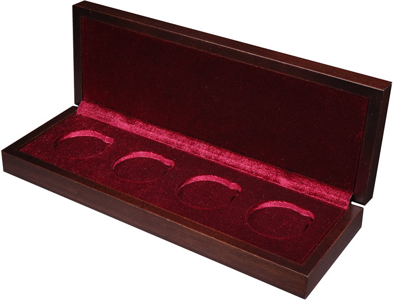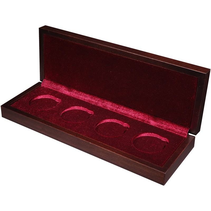 Футляр Дерево красный на 4 монеты Ø 44 (276х92х41 мм)